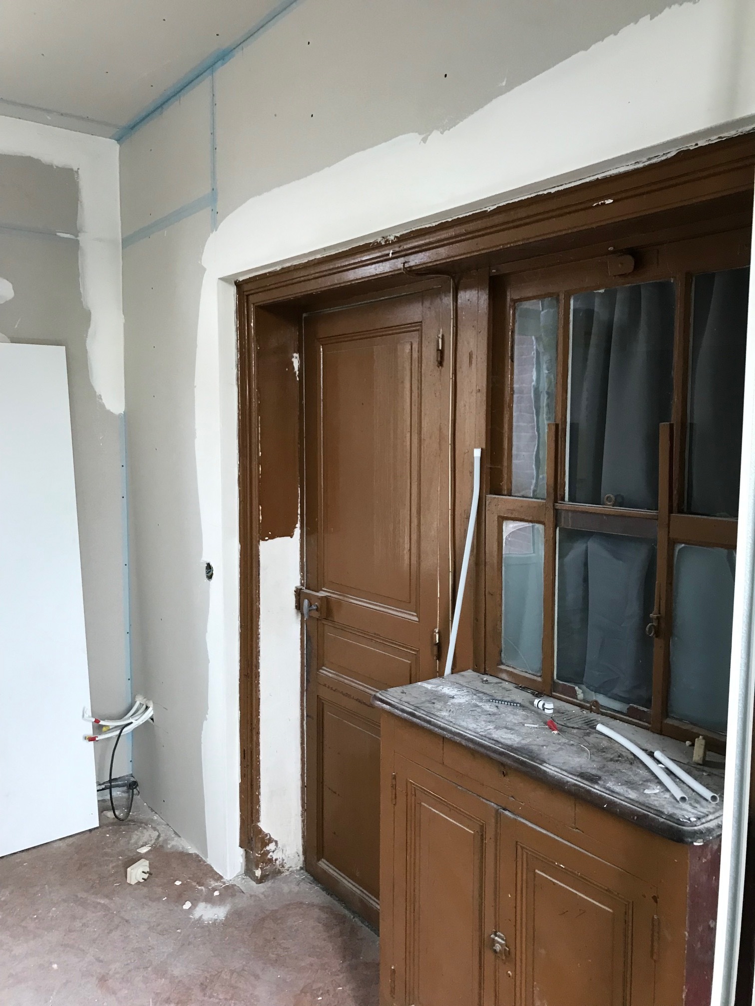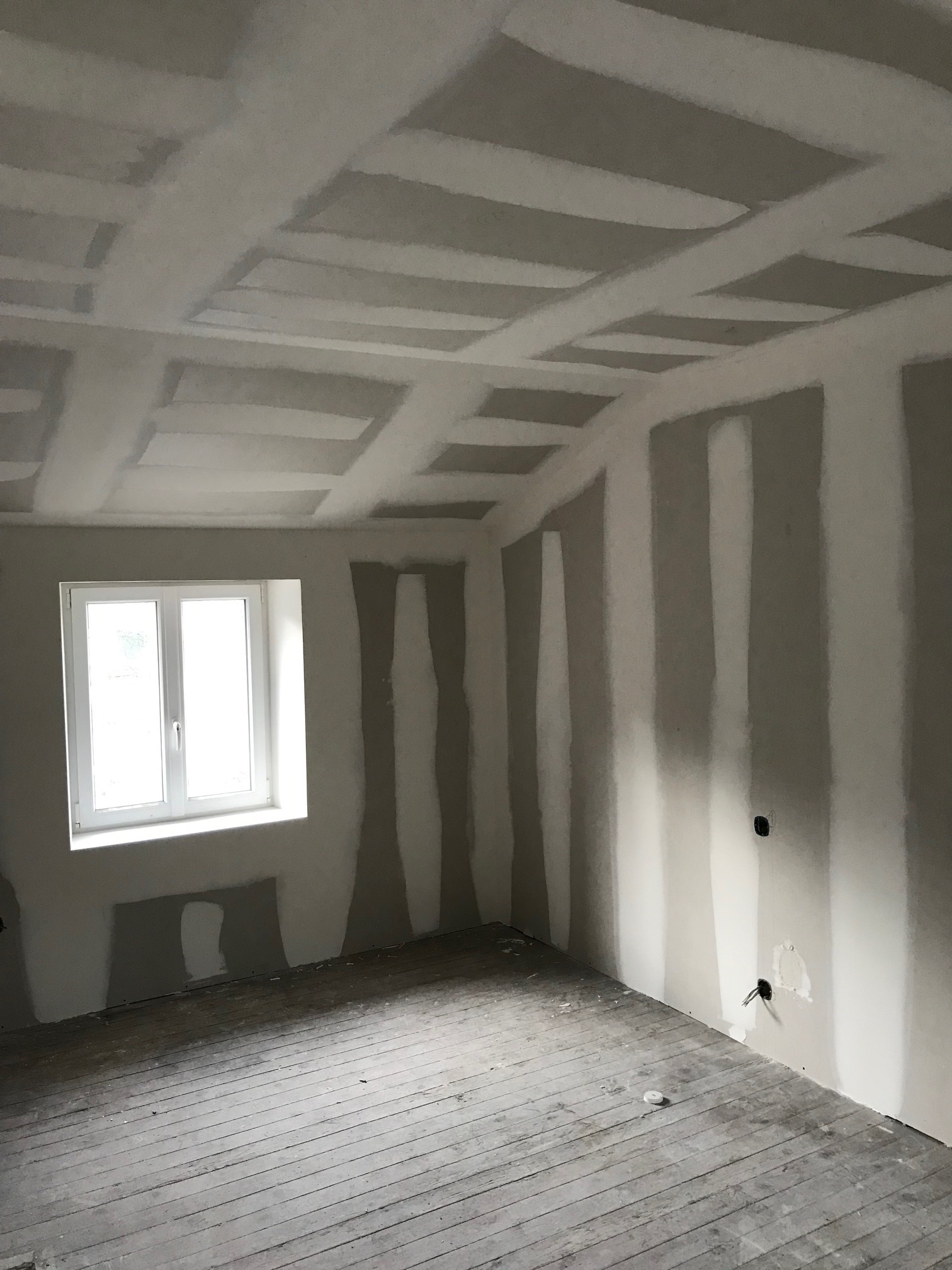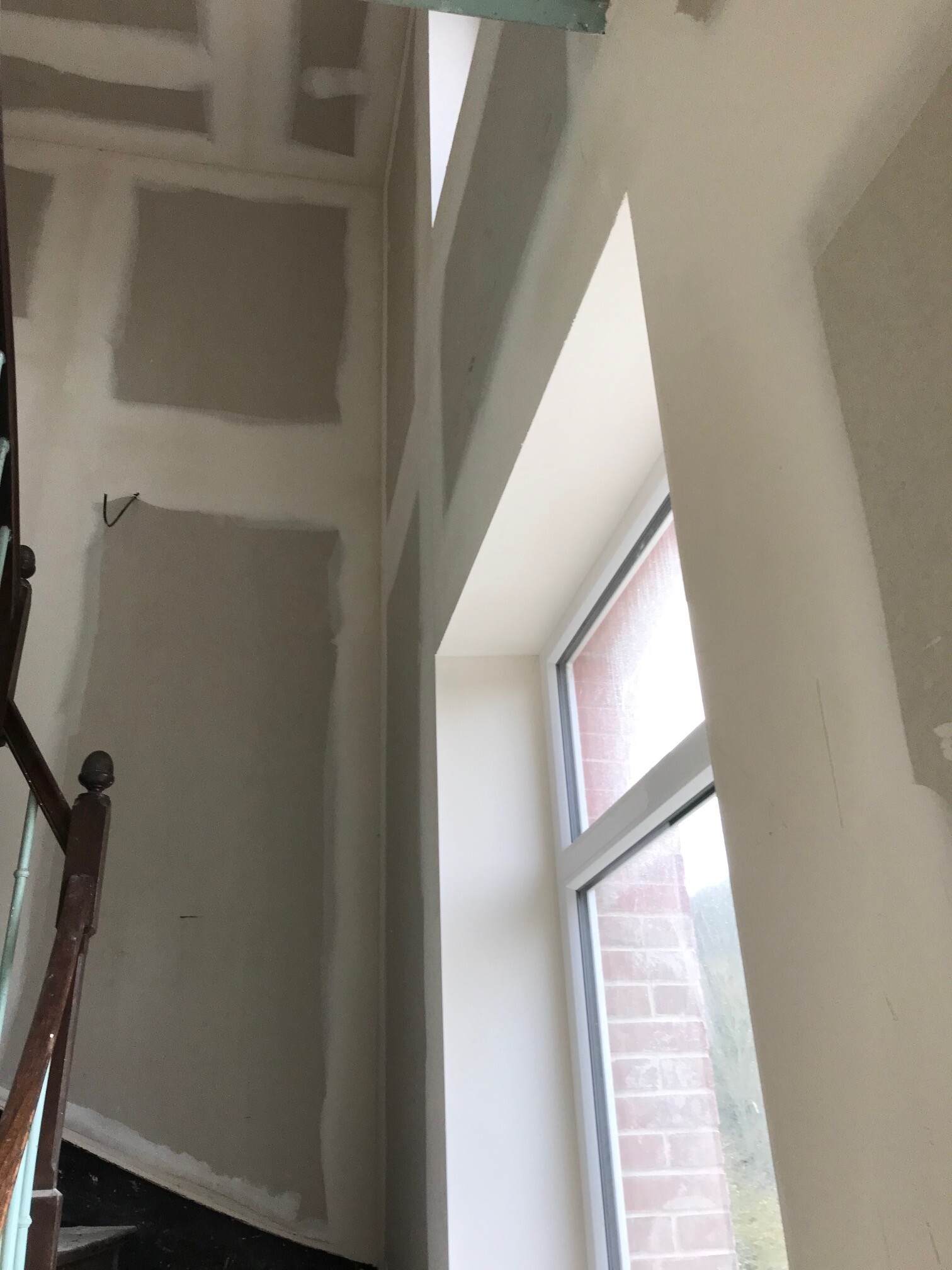 ● Doublage en panneaux de polystyrène expansé type Placomur, 1 face standard 10+20 mm dans la cage d'escalier