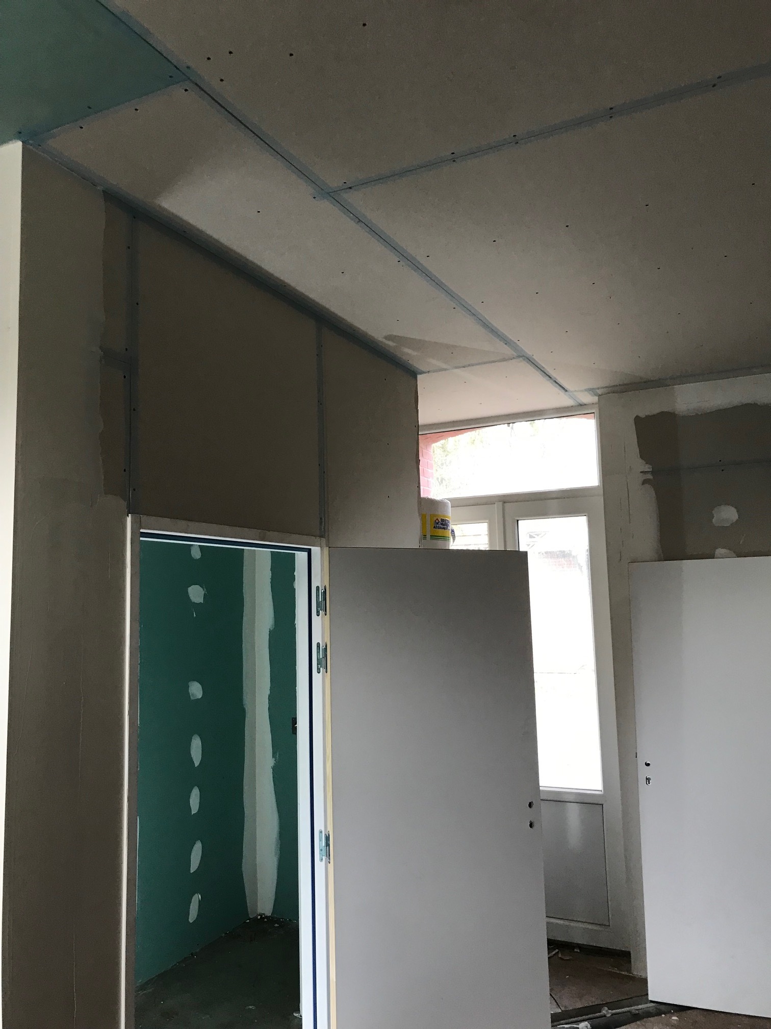 ● Plafonds en BA13 standard sur fourrures métalliques, y compris membrane d'étanchéité