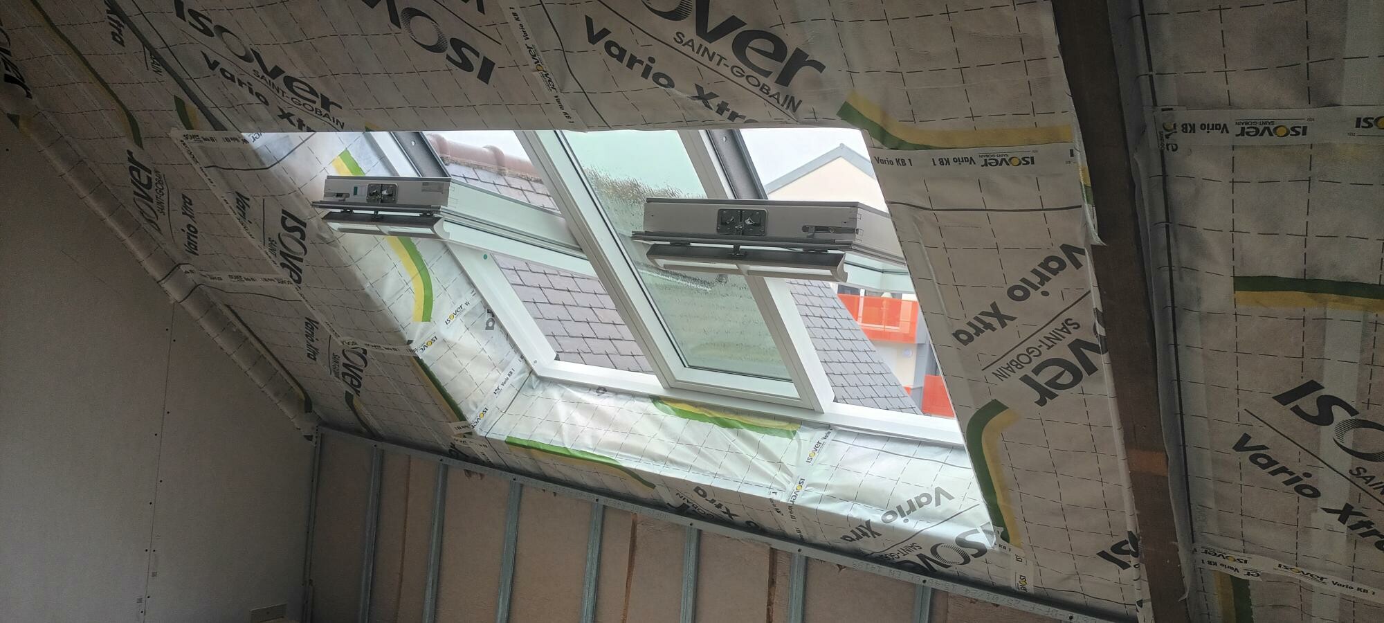 ● Châssis vélux type verrière 3 en 1 GGLS verrière atelier (2 Rotation et 1 fixe central - Finition WhiteFinish - Peint blanc) 188*140 version confort non encastré.